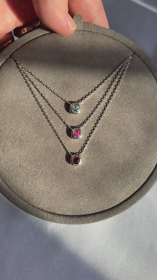 Pink Sapphire Large Puff Pendant in Sterling Silver