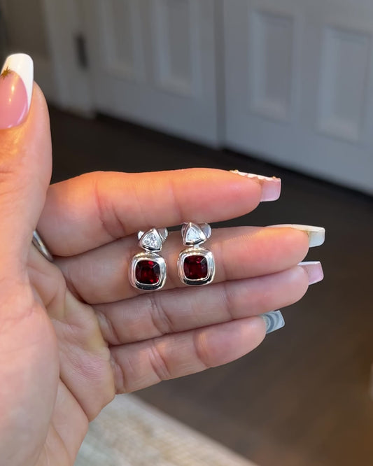 Red Garnet Puff Drop Earrings in Sterling Silver