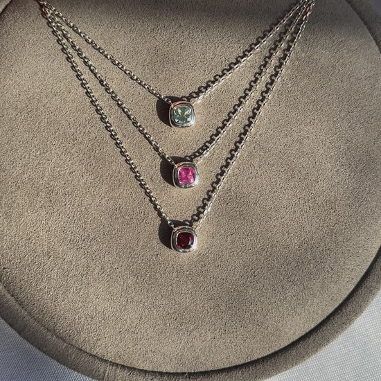 The Puff Pendant features a vibrant 5mm gemstone, bezel-set in high-polish sterling silver. Designed to float effortlessly on your neckline, this solitaire is a playful statement with timeless appeal, perfect on its own or layered into your everyday stack.