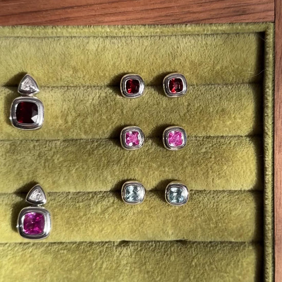 A playful twist on a classic stud, the Puff Earrings feature vibrant 5mm cushion-cut gemstones in a smooth, high-polish sterling silver setting. Bold yet wearable, these studs are perfect for everyday sparkle or adding a colorful pop to your stack.