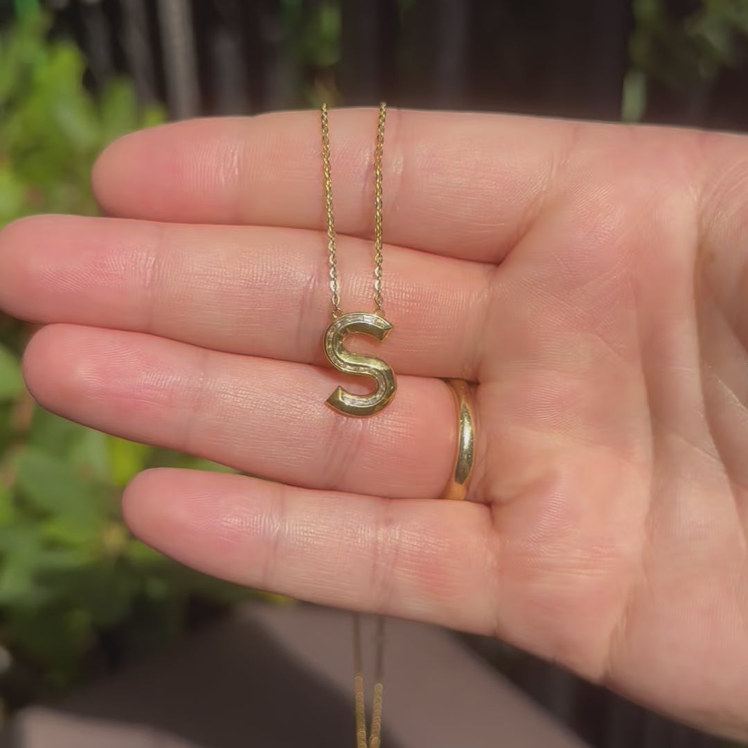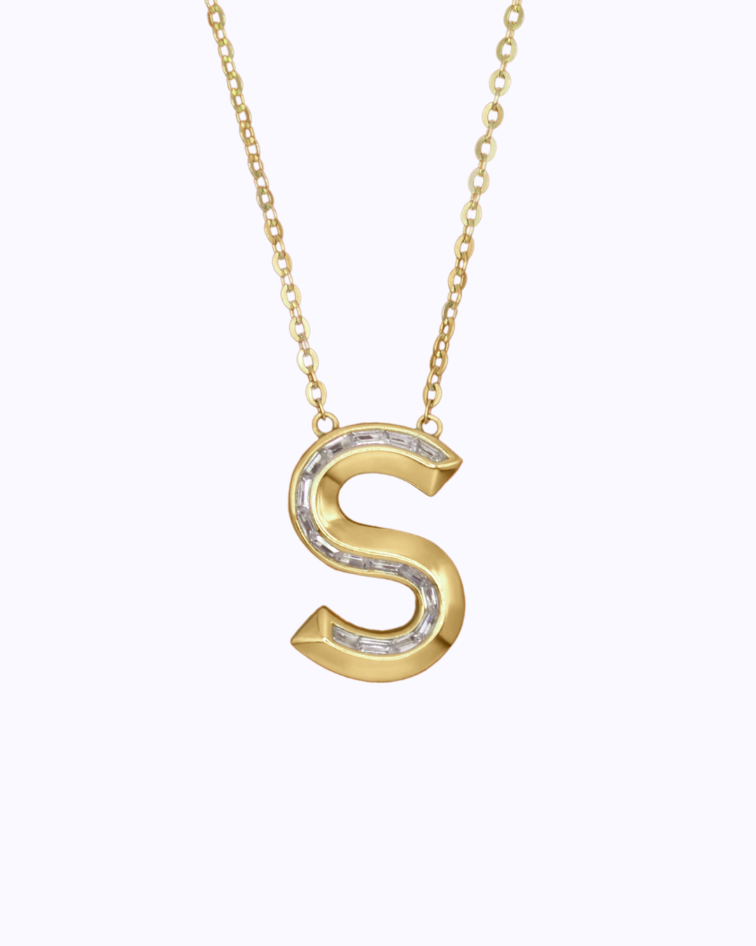 Crafted in luxurious 18K gold, our Initial Pendant Necklace is a modern classic. Featuring custom-cut baguette diamonds along a sleek knife-edge design, this pendant adds a refined touch to your personal style. Each piece is custom-made to order.