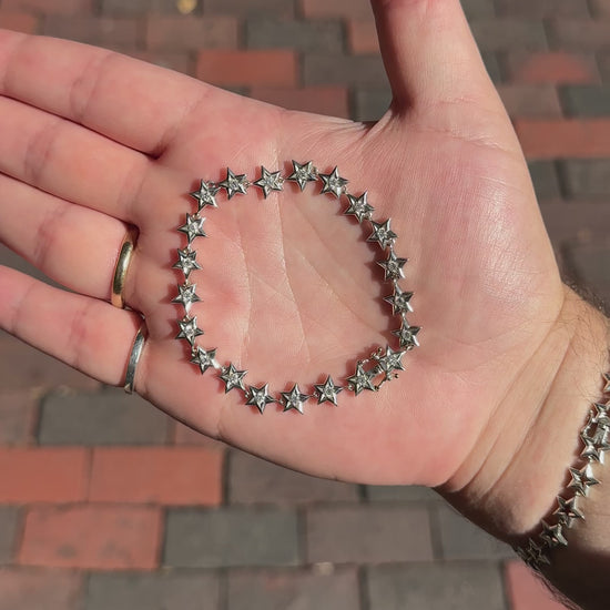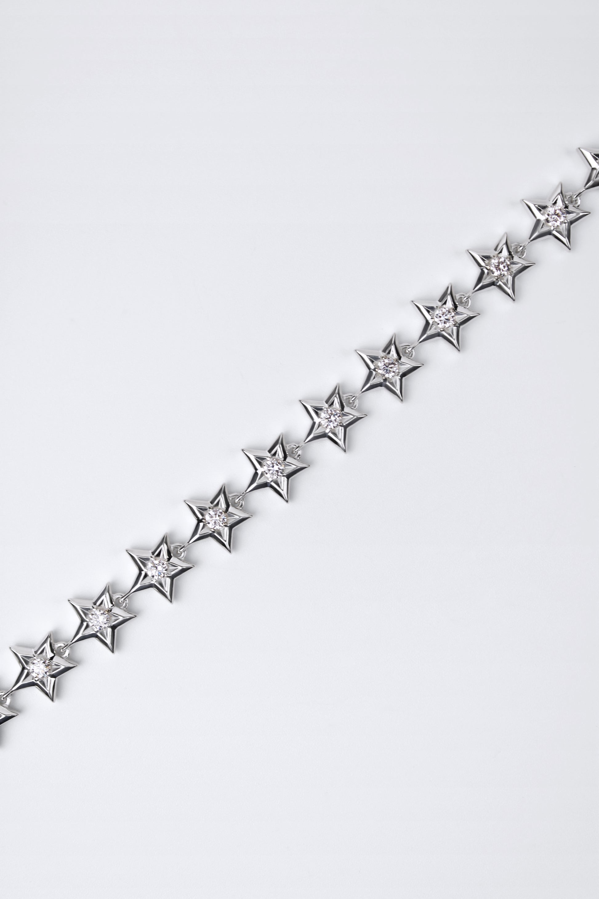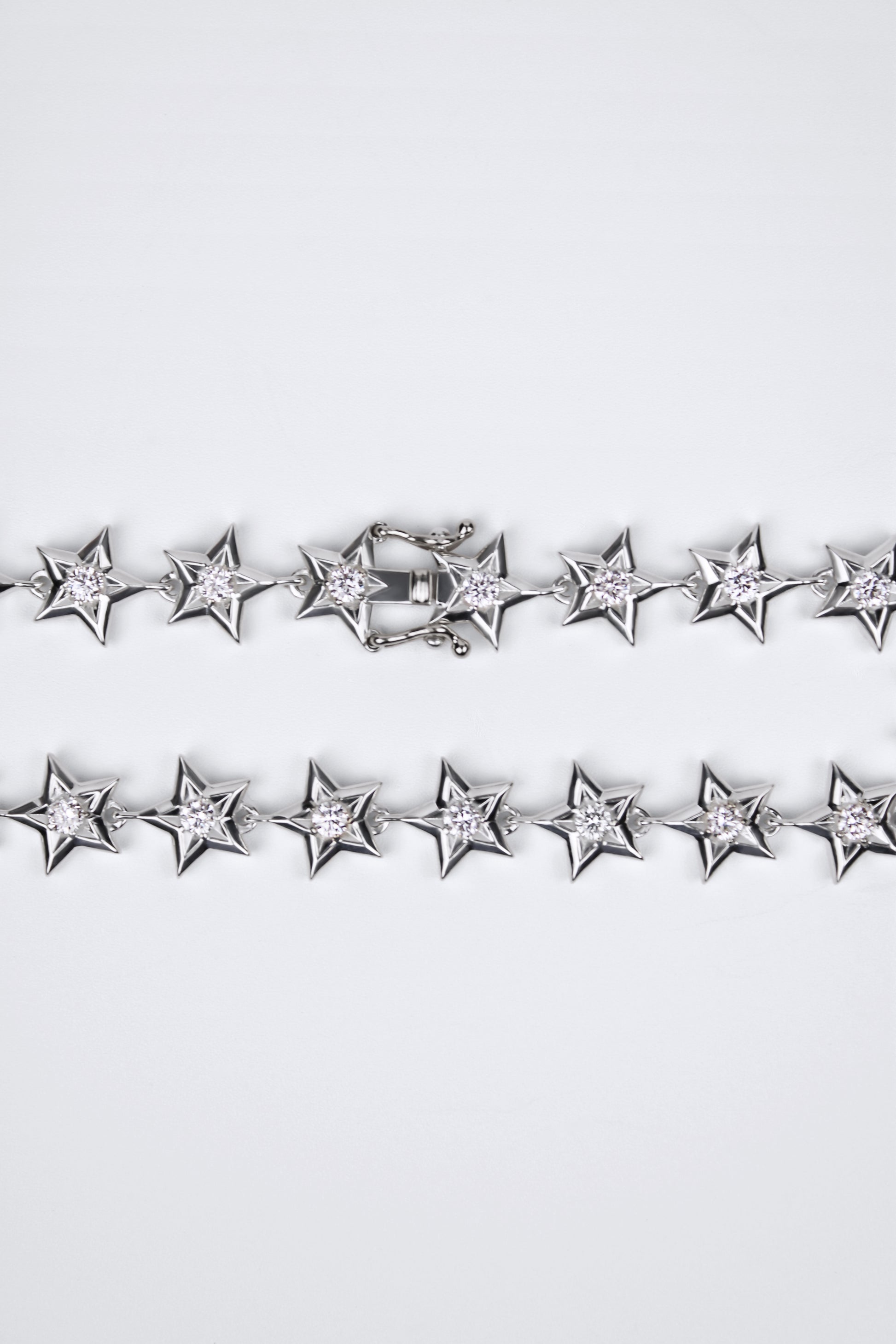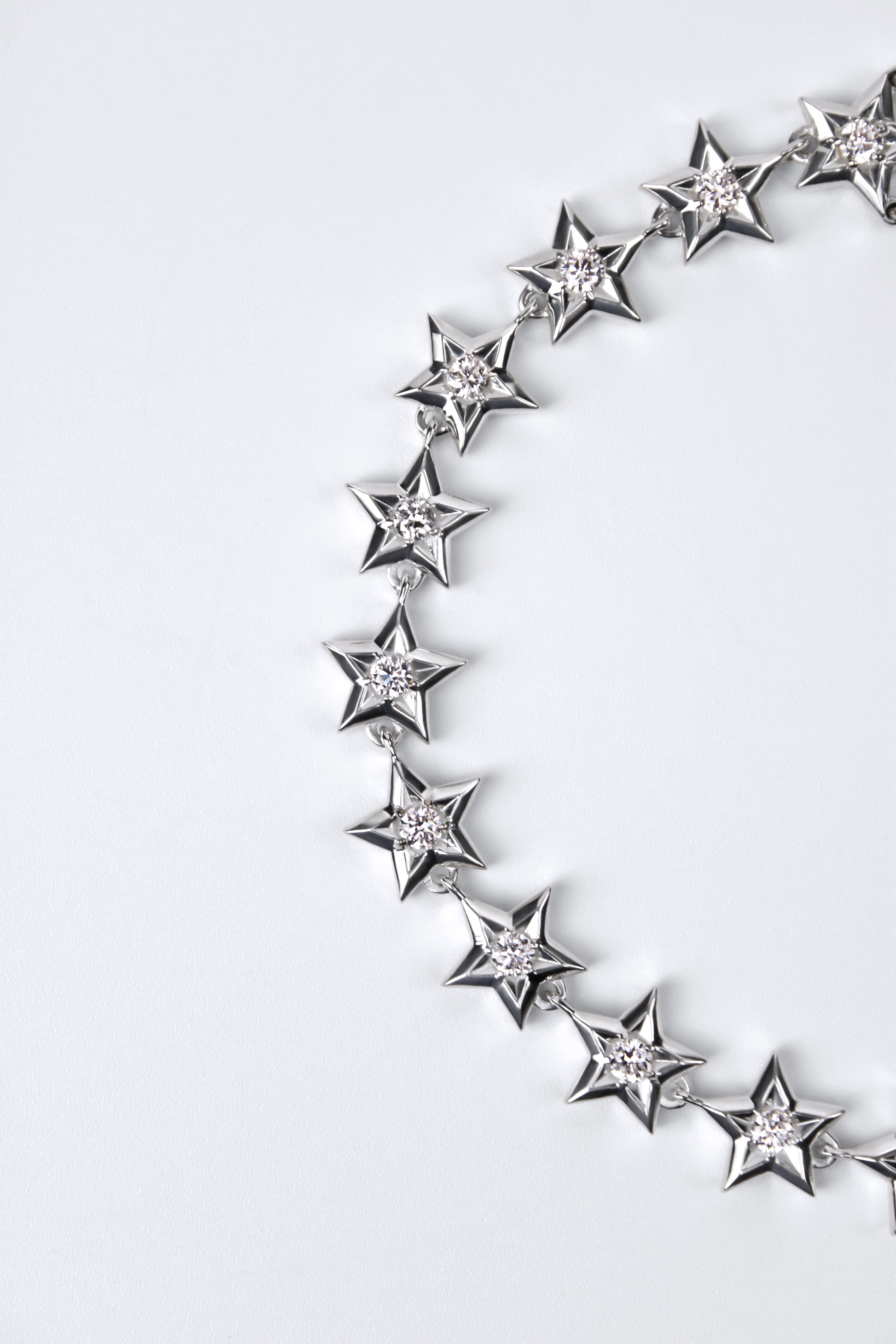 Designed for Dreamers. Inspired by the endless beauty of the night sky, the Star Link Necklace is a bold yet refined expression of celestial elegance. Featuring a seamless sequence of sculptural, knife-edge stars, feature a brilliant cut diamond, creating a luminous effect that commands attention.