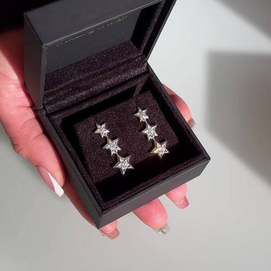 Written in the Stars. Everyday sparkle with a celestial touch, the Star Link Drop Earrings feature a sculptural star design, crafted in sterling silver with a mirror-finish polish. Set with a sparkling lab-grown diamond, creating an inside-out shimmer that catches light with every movement.
