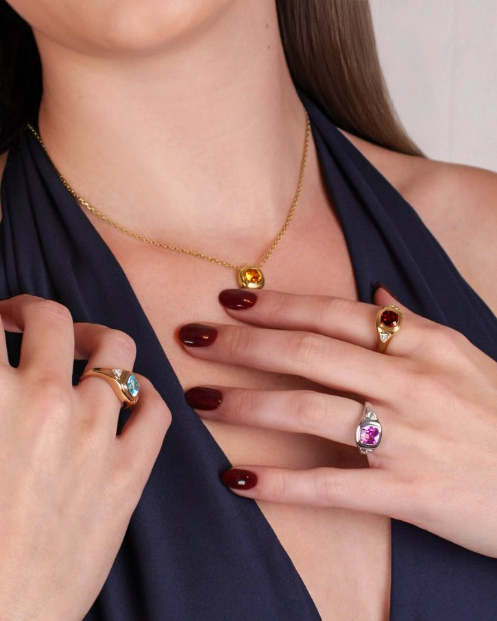 - Natural stone options: topaz, peridot, garnet, citrine, or amethyst