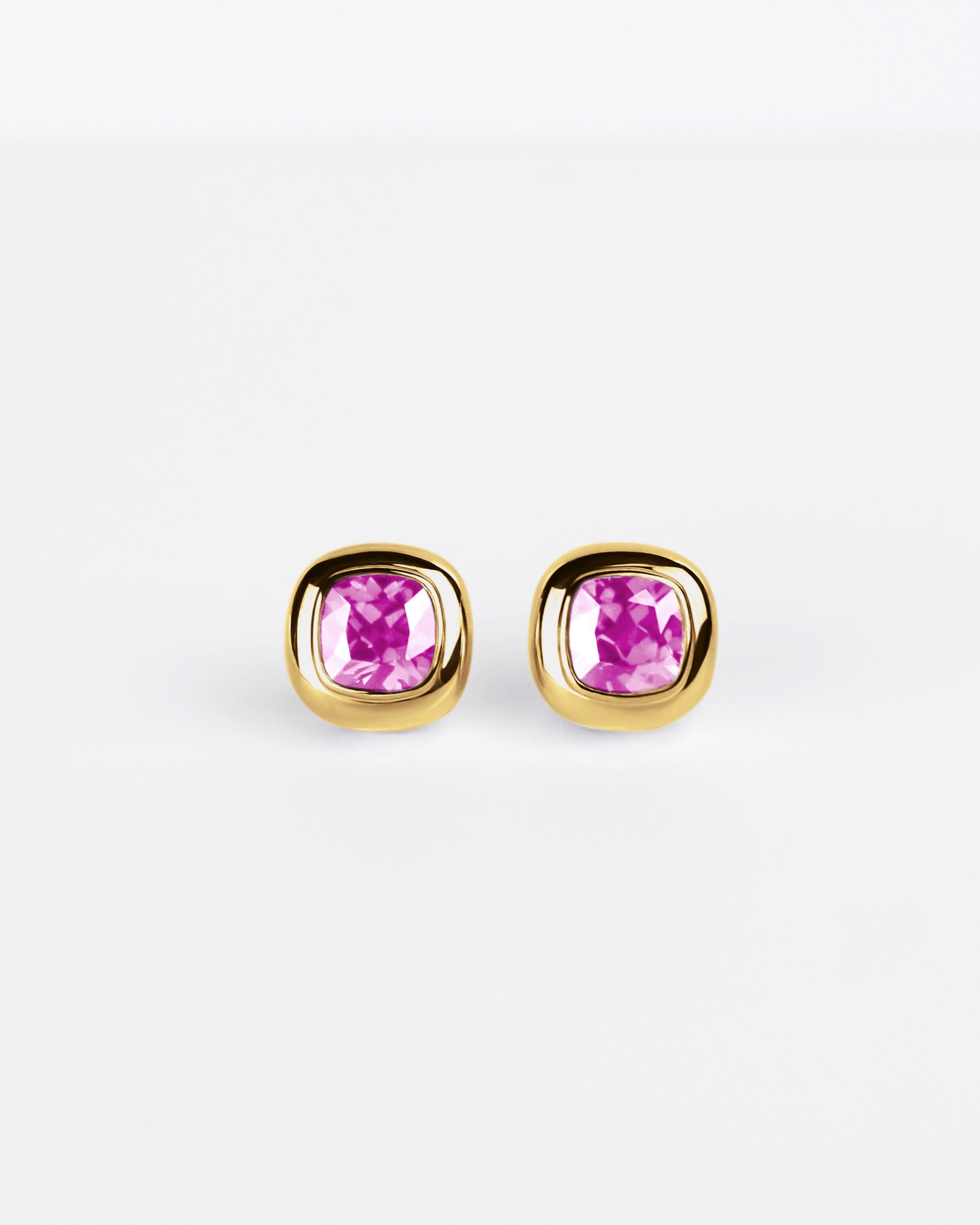 A striking evolution of the stud. The Large Puff Earrings showcase 7mm cushion-cut gemstones in sculptural bezels of polished 18k gold. Radiant and bold, their generous proportions transform a classic silhouette into a statement jewel. Made to be seen, remembered, and celebrated.