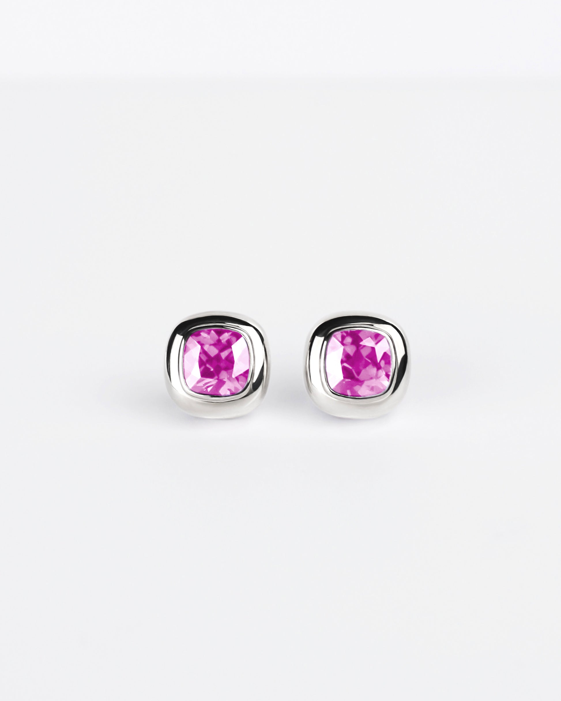 A striking evolution of the stud. The Large Puff Earrings showcase 7mm cushion-cut gemstones in sculptural bezels of polished sterling silver. Radiant and bold, their generous proportions transform a classic silhouette into a statement jewel. Made to be seen, remembered, and celebrated.